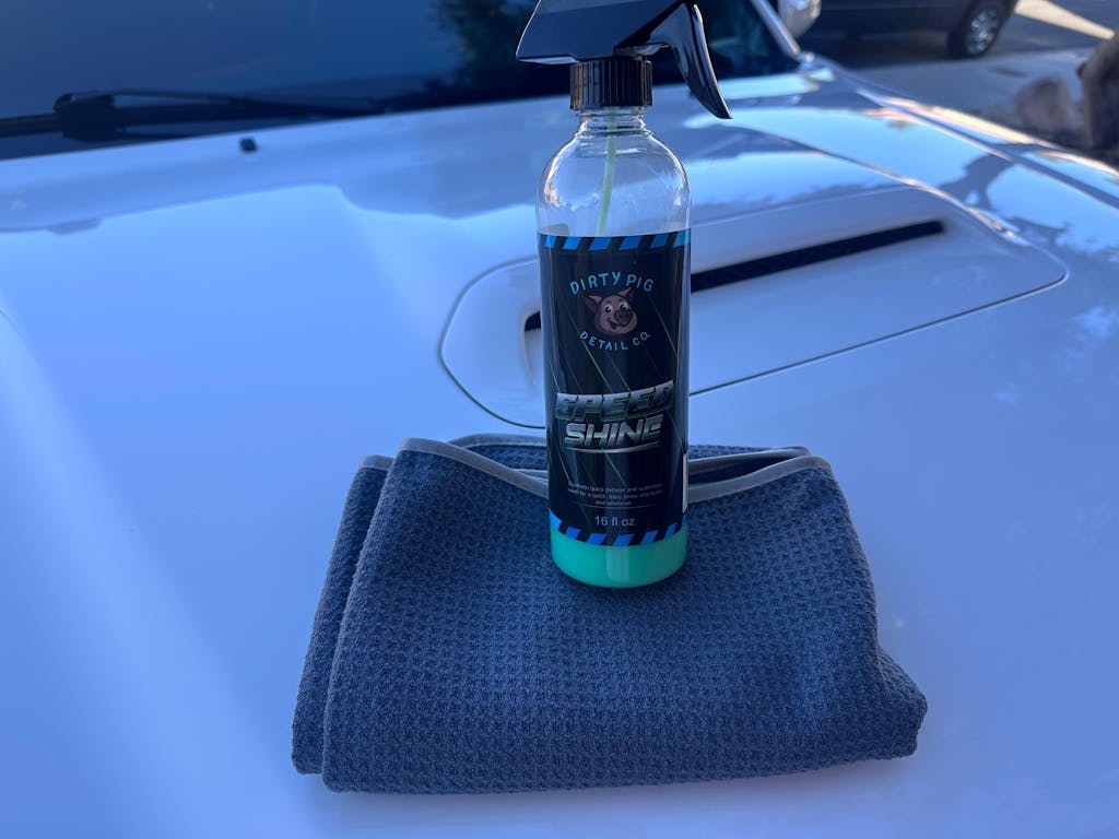 Achieve a streak-free shine in minutes with Speed Shine. Its advanced synthetic blend lifts minor dust, fingerprints, and road film while boosting gloss, water beading, and surface slickness. Safe for ceramic coatings and waxes, this formula works across paint, glass, chrome, plastics, and trim. Ideal when used after a wash with Purple Pig Wash & Wax, as a finish to Oinkment Banana Wax, or even by itself.
